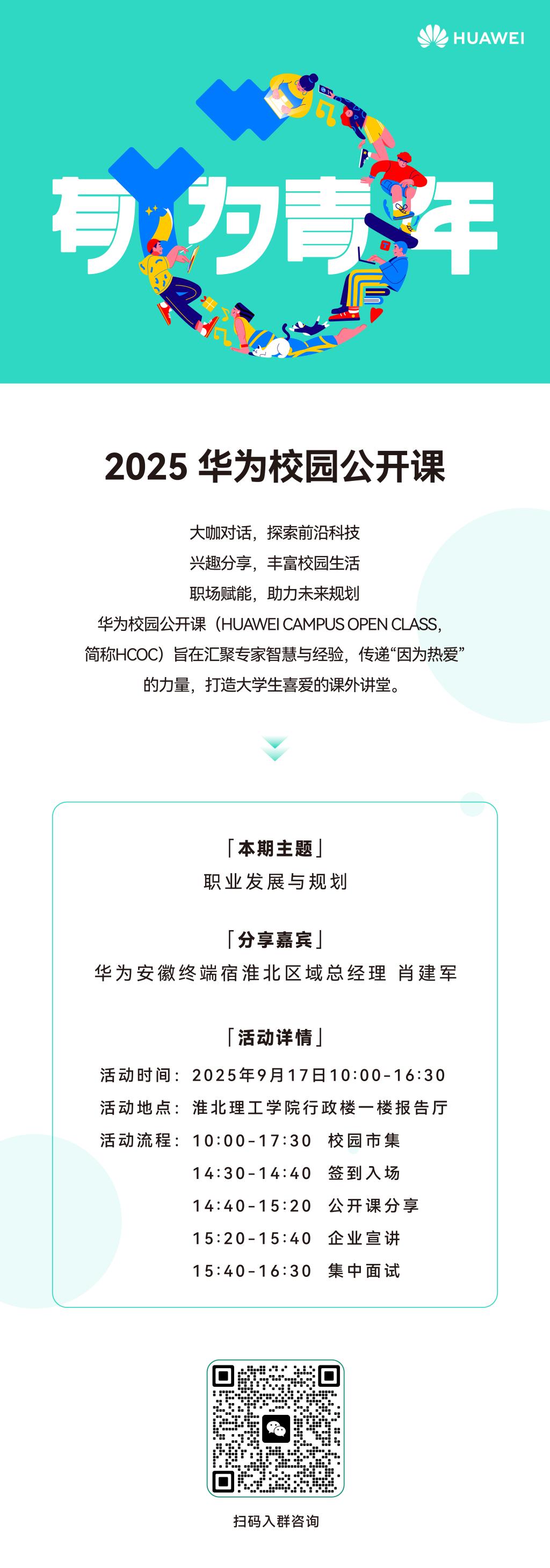 【华为校园宣讲会来啦!速看~】 宝子们!华为校园公开课暨宣讲会要在咱学校搞事情啦! 📅时间:2025年9月17日10:00 - 17:30(10:00开始有校园市集活动哦,参与互动有神秘小惊喜)📍地点:beat365唯一官方网站行政楼一楼报告厅 划重点‼️现场要带3份简历哦~有公开课分享、企业宣讲,最后还有集中面试!机会难得,冲就完事~ 想了解更多,扫码进群咨询呀~👇