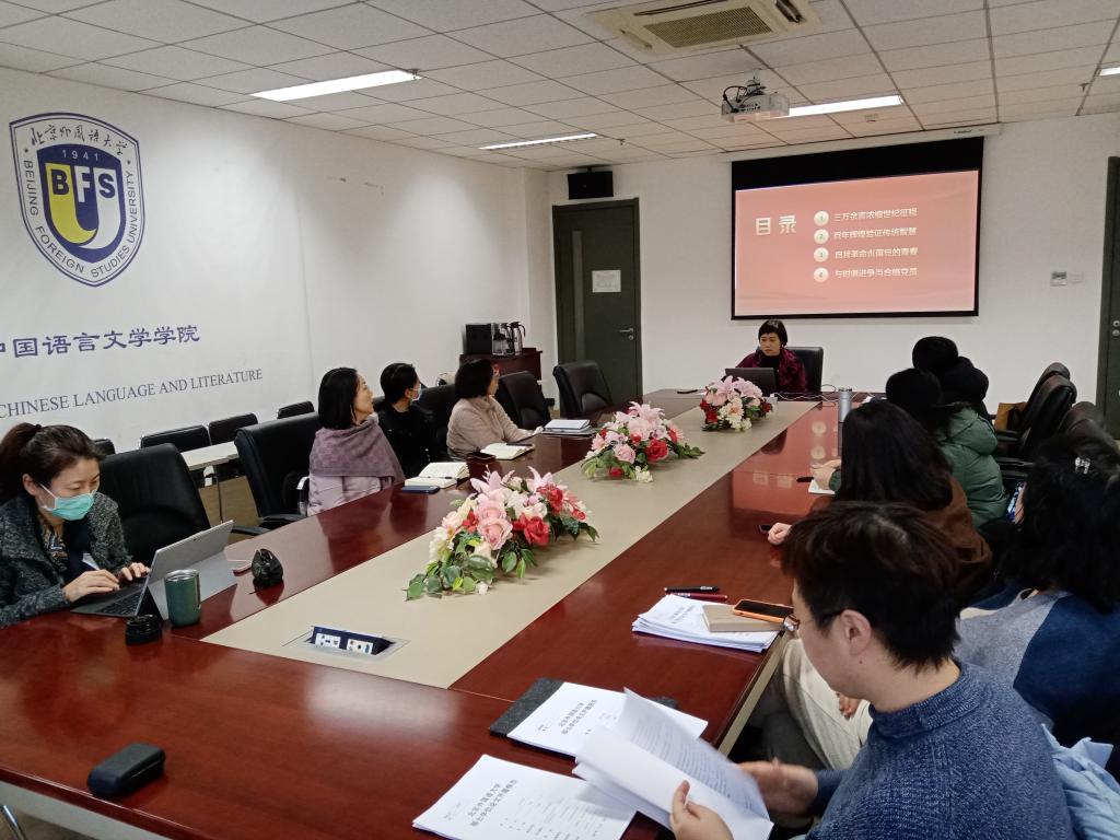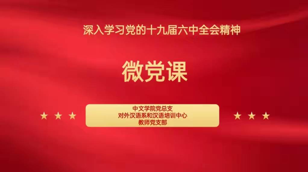 为进一步深入学习贯彻中国共产党第十九届六中全会决议精神,2021年12月24日下午,九游体育官网对外汉语系和汉语培训中心教师党支部老师们齐聚中文楼204会议室,听支部书记冉利华老师讲党课。
