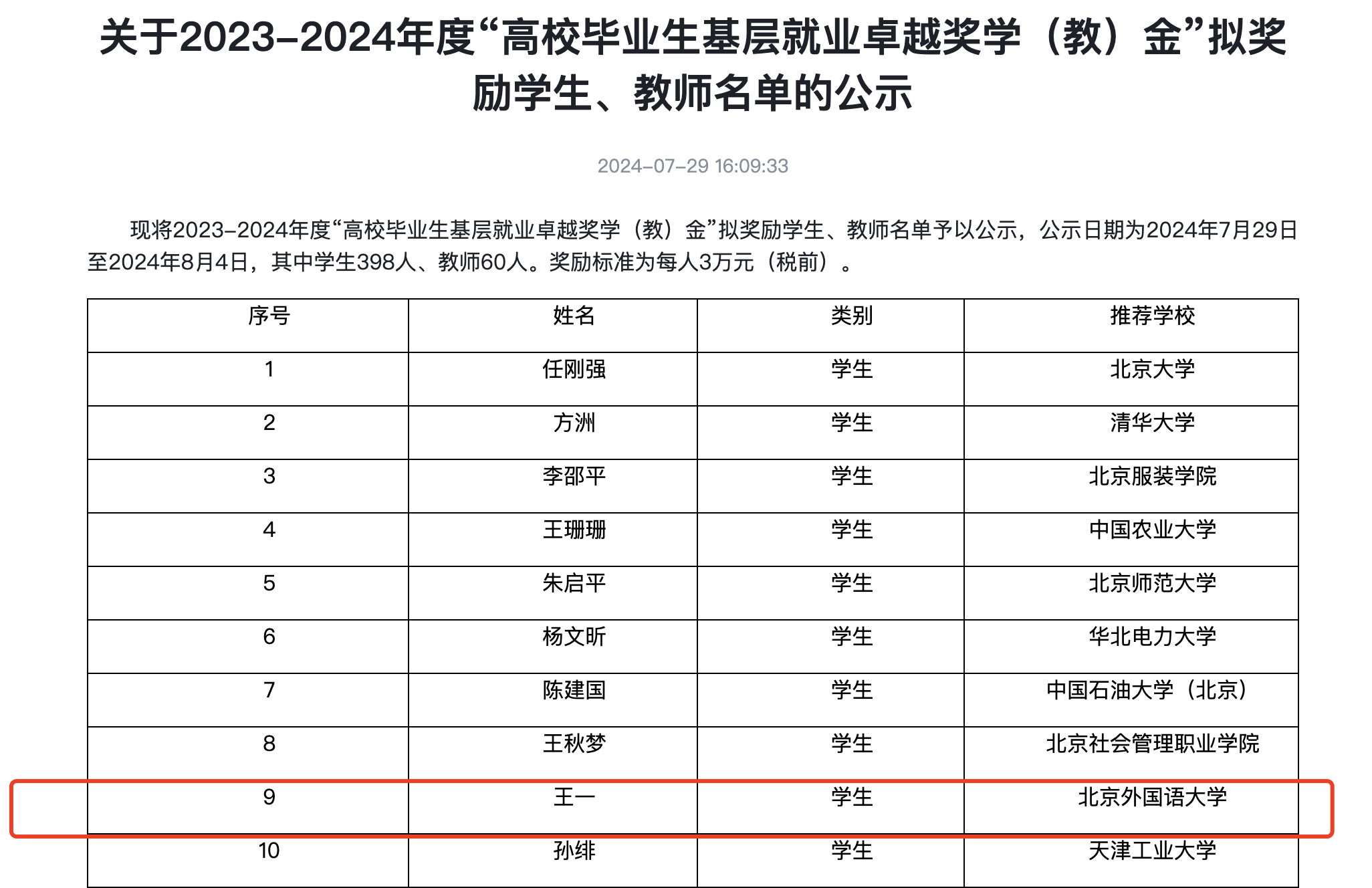 近日,中国教育发展基金会公布了2023--2024年度“全国高校毕业生基层就业卓越奖”获奖人选。九游体育官网2013届毕业生王一荣获“全国高校毕业生基层就业卓越奖”。